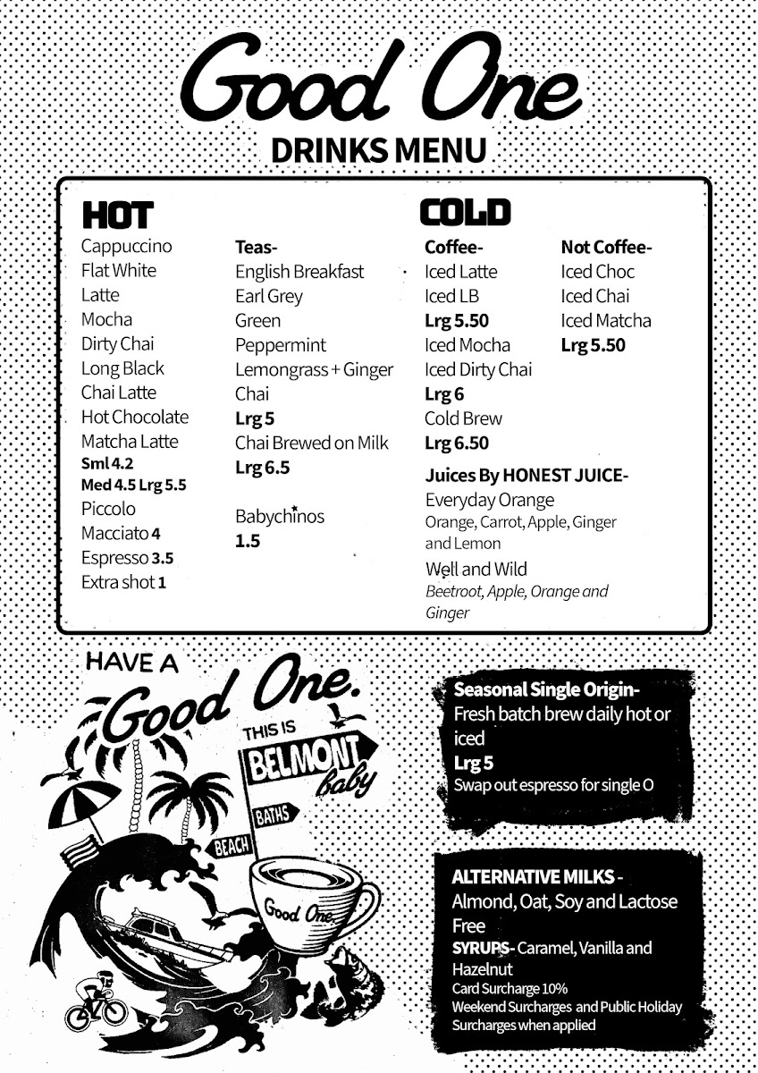 Welcome to Good One, a hidden gem located at 36 Brooks Parade, Belmont NSW, right by the picturesque Lake Macquarie. This cafe is the ideal spot for those seeking a relaxed atmosphere paired with delicious bites and quality coffee.